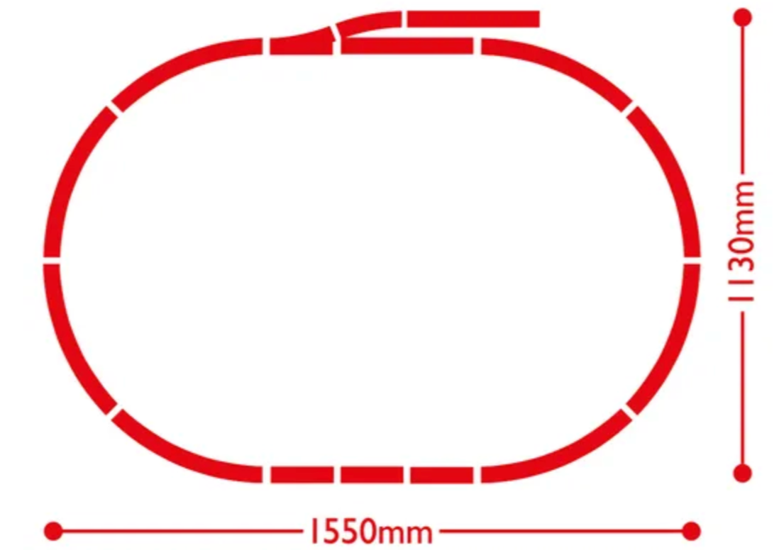1x Model Diesel Locomotive, 3x Wagons, 1x 3rd Radius Starter Oval Track, 1x Track Pack 1 (includes point and buffer), 1x DC Train Controller (R7229), 1x Wall Plug Transformer (P9000W), 1x Power Connecting Track (R8206), 1x Hornby MidiMat (1600 x 1180mm), 1x Rerailer, 1x Accessory Pack (includes driver figures and vacuum pipes), 1x Instructions