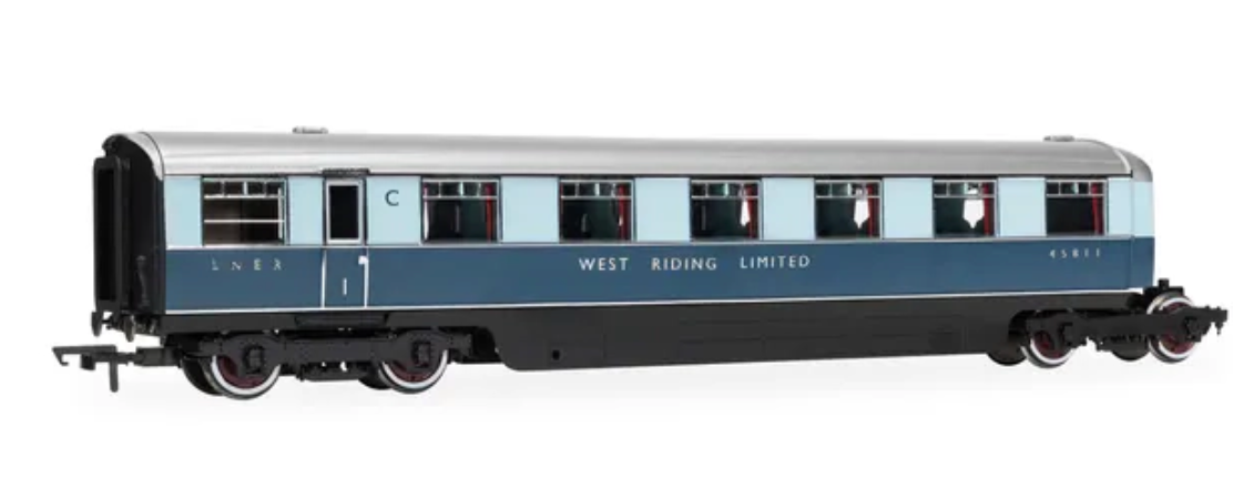A new set of carriages was built that was identical to the ‘Coronation’ with four twin articulated coaches, though not the streamlined beavertail observation car, named the ‘West Riding Limited’. Carriages were in pairs, sharing a bogie between the two, thus reducing friction and improving ride quality.