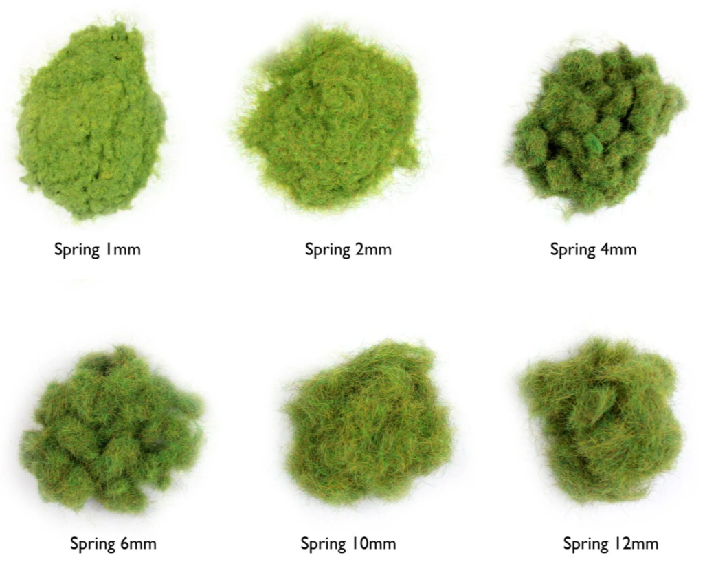 Use different static grass lengths to build up authentic looking grassy model landscapes